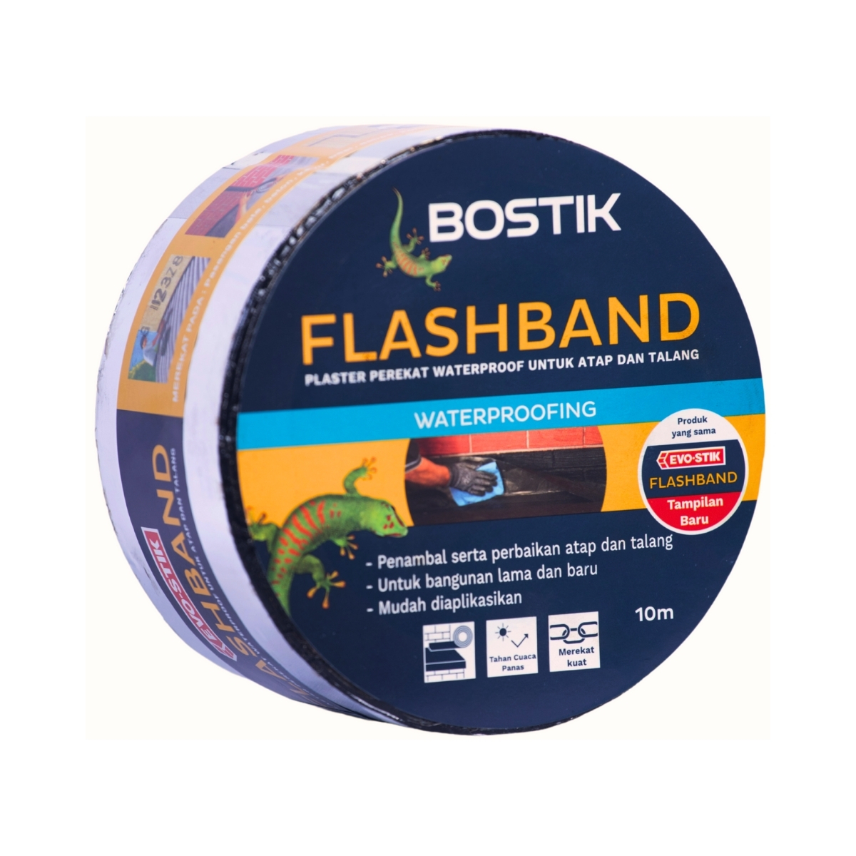Flashband sangat cocok untuk perbaikan pada bangunan bagian atap rumah dengan manfaat sebagai pelapis kebocoran (wateproof), untuk perbaikan kapal laut, pembungkus pipa ac, kendaraan, dan sebagainya